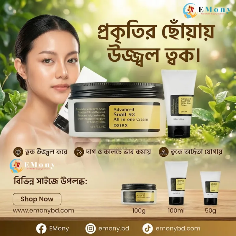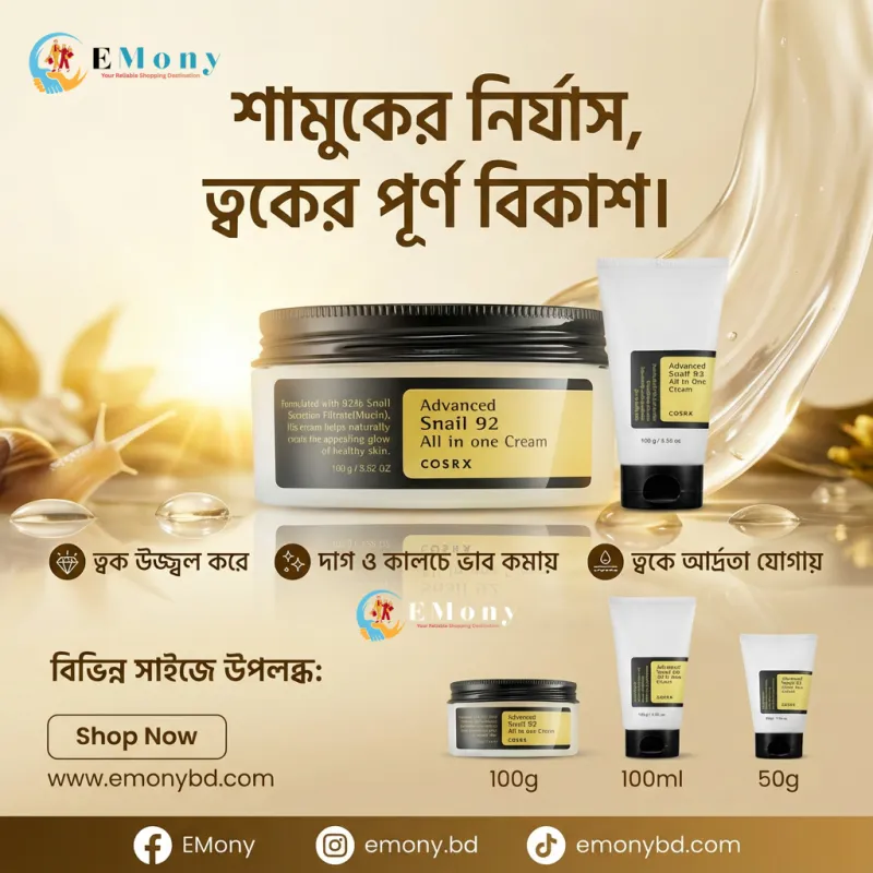 The COSRX Advanced Snail 92 All-in-One Cream is a rich, gel-type moisturizer powered by 92% snail mucin. It deeply hydrates, repairs damaged or irritated skin, and helps strengthen the skin barrier for a smoother, plumper, more radiant complexion.