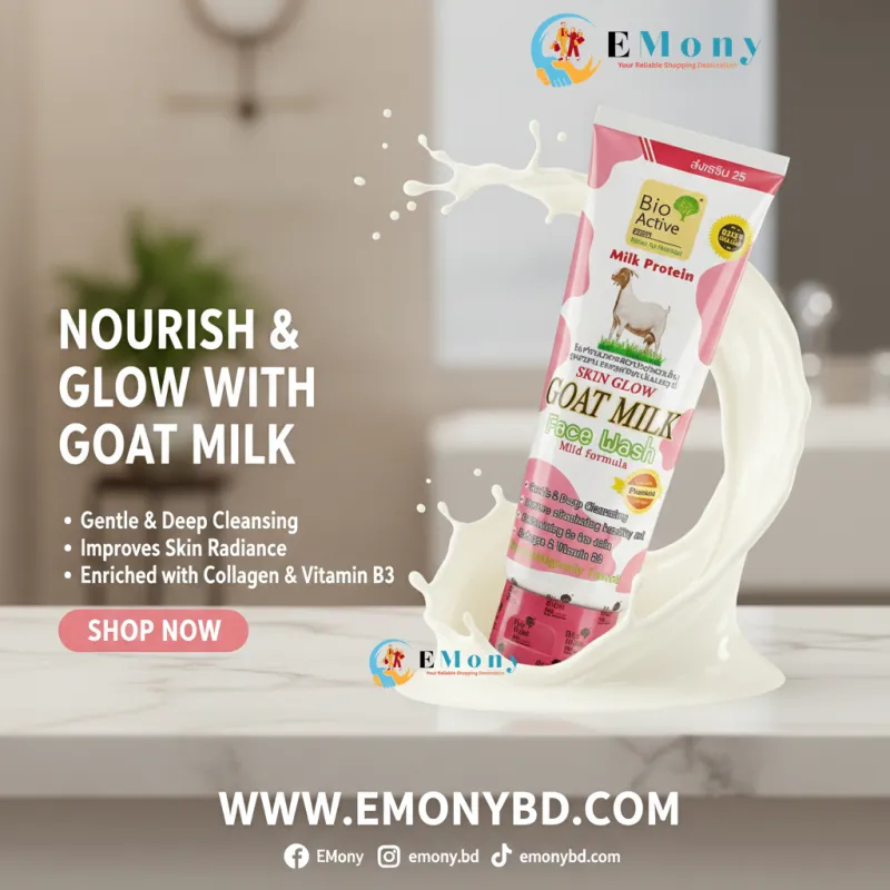 বায়ো একটিভ গোট মিল্ক ফেস ওয়াশ (Bio Active Goat Milk Facewash) ত্বকের কোমলতা ও উজ্জ্বলতা বাড়াতে একটি অনবদ্য পণ্য। ছাগলের দুধে থাকা প্রাকৃতিক ল্যাকটিক অ্যাসিড ত্বককে ভেতর থেকে পরিষ্কার করে এবং মরা কোষ দূর করে ত্বককে করে তোলে উজ্জ্বল। এতে রয়েছে ভিটামিন এবং খনিজ উপাদান যা ত্বকের গভীরে পুষ্টি জোগায় এবং আর্দ্রতা ধরে রাখে, ফলে ধোয়ার পর ত্বক টানটান বা শুষ্ক অনুভূত হয় না। এটি ত্বকের পিএইচ (pH) ভারসাম্য বজায় রাখতে সাহায্য করে এবং ত্বককে দেয় দুধের মতো শুভ্র ও কোমল ছোঁয়া। যারা প্রাকৃতিকভাবে গ্লোয়িং এবং হাইড্রেটেড ত্বক চান, তাদের জন্য এই ফেস ওয়াশটি একটি আদর্শ পছন্দ।