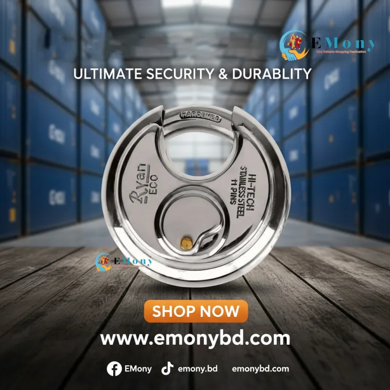 আপনার দোকান, গুদাম বা বাড়ির সর্বোচ্চ নিরাপত্তা নিশ্চিত করতে ৯০ মি.মি. হেভি-ডিউটি স্টেইনলেস স্টিল আল্ট্রা ডিস্ক লক একটি অপরিহার্য সমাধান। এটি উন্নতমানের মরিচারোধী স্টেইনলেস স্টিল দিয়ে তৈরি, যা হাতুড়ি বা কাটার দিয়ে ভাঙা প্রায় অসম্ভব। এর সবচেয়ে বড় বৈশিষ্ট্য হলো এর ১৪-পিন ব্রাস ডিম্পল সিলিন্ডার, যা মাস্টার কী বা ডুপ্লিকেট চাবি দিয়ে খোলার ঝুঁকি একদম কমিয়ে দেয়। সাথে থাকা ৪টি স্পেশাল ডিম্পল চাবি হারানো বা নষ্ট হওয়ার চিন্তা দূর করে। শাটার, কোল্যাপসিবল গেট বা যেকোনো বড় লকারের জন্য এটি একটি প্রিমিয়াম সিকিউরিটি টুল যা দীর্ঘস্থায়ী সুরক্ষার নিশ্চয়তা দেয়।