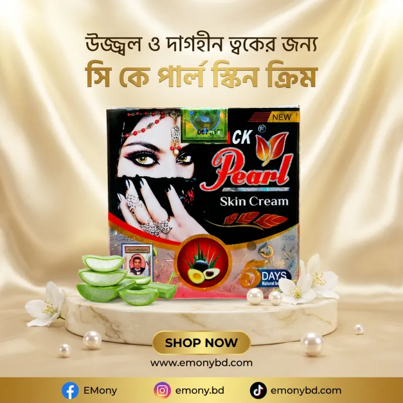 উজ্জ্বল এবং দাগহীন ত্বক পেতে সিকে পার্ল স্কিন ক্রিম (CK Pearl Skin Cream) একটি অনন্য বিউটি সলিউশন। এই ক্রিমে থাকা মুক্তার নির্যাস (Pearl Extract) ত্বকের কোলাজেন উৎপাদন বাড়িয়ে ত্বককে টানটান ও মসৃণ রাখে। এটি ত্বকের হাইপারপিগমেন্টেশন, ব্রণের দাগ এবং রোদে পোড়া কালচে ভাব কার্যকরভাবে দূর করে। এর লাইট-ওয়েট ফর্মুলা ত্বকের গভীরে সহজে শোষিত হয়ে দীর্ঘক্ষণ আর্দ্রতা ও সতেজতা বজায় রাখে। নিয়মিত ব্যবহারে এটি আপনার স্কিন টোনকে উজ্জ্বল করার পাশাপাশি ত্বকে একটি ন্যাচারাল পার্লি গ্লো (Pearly Glow) নিয়ে আসে। সব ধরনের ত্বকে ব্যবহারের উপযোগী এই ক্রিমটি আপনার প্রতিদিনের স্কিনকেয়ার রুটিনে আভিজাত্য যোগ করবে।