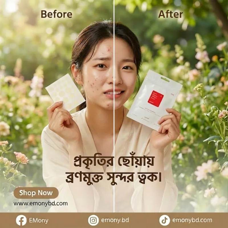 ত্বকের জন্য দ্রুত কার্যকরী সমাধান। প্যাচটি হাইড্রোকলয়েড টেকনোলজি ব্যবহার করে তৈরি, যা: পিম্পল বা ব্রেকআউটকে ঢেকে রাখে অতিরিক্ত তেল ও তরল শোষণ করে সংক্রমণ প্রতিরোধ করে দাগ ও স্কার কমাতে সহায়তা করে পাতলা ও অদৃশ্য হওয়ায় দিনের সময়েও ব্যবহারযোগ্য ব্যবহারের পদ্ধতি: ত্বক পরিষ্কার ও শুকানো অবস্থায় প্রয়োগ করুন। প্রয়োজনমতো পিম্পলের উপর প্যাচ লাগান। ৬–৮ ঘণ্টা বা রাতে ব্যবহার করুন। প্যাচ সরানোর পর ত্বক হালকা পরিষ্কার করুন। সতর্কতা: চোখে লাগানো এড়িয়ে চলুন। সংবেদনশীল ত্বকের জন্য প্রথমবারে প্যাচ টেস্ট করুন। মূল সুবিধা দ্রুত পিম্পল শুকানো 🩹 ব্ল্যাকহেড ও হোয়াইটহেড নিয়ন্ত্রণ সংক্রমণ প্রতিরোধ সহজ ও হালকা ব্যবহারের জন্য ডিজাইন করা দাগ কমাতে সহায়তা প্রোডাক্ট ফিচার পরিমাণ: 24 পিস উপযুক্ত স্কিন টাইপ: সব ধরনের ত্বক, বিশেষ করে সংবেদনশীল ত্বক প্রয়োগযোগ্য সময়: দিনে বা রাতে মূল উপাদান: হাইড্রোকলয়েড