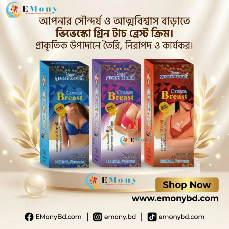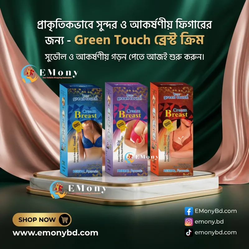 নারীদের শারীরিক গঠন ও ত্বকের যত্নে গ্রিন টাচ ব্রেস্ট ক্রিম (Green Touch Breast Cream) একটি নিরাপদ এবং কার্যকর ভেষজ সমাধান। এর বিশেষ হার্বাল ফর্মুলা ত্বকের কোলাজেন উৎপাদন বৃদ্ধি করে টিস্যুকে সুদৃঢ় (Stronger) ও টানটান রাখতে সাহায্য করে। এটি বিভিন্ন ভেরিয়েশনে পাওয়া যায় যা ভিন্ন ভিন্ন প্রয়োজন অনুযায়ী কাজ করে। প্রাকৃতিক উপাদানে সমৃদ্ধ হওয়ায় এটি ব্যবহারে কোনো পার্শ্বপ্রতিক্রিয়ার ঝুঁকি নেই। নিয়মিত ব্যবহারে এটি ত্বকের শিথিলতা দূর করে এবং একটি মসৃণ ও সুন্দর গড়ন প্রদানে সহায়তা করে। যারা প্রাকৃতিকভাবে এবং নিরাপদ উপায়ে নিজের যত্ন নিতে চান, তাদের জন্য এই ভেষজ ক্রিমটি একটি বিশ্বস্ত পছন্দ।