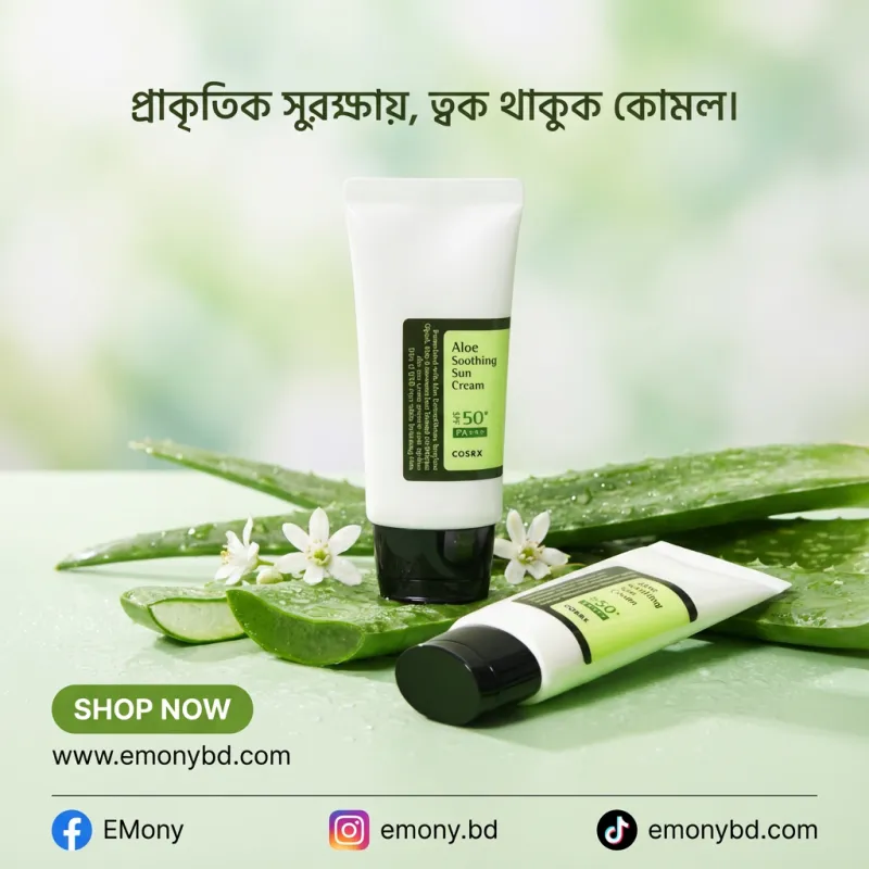 একটি হালকা ও ময়শ্চারাইজিং সানক্রিম যা ৫৫,০০০ ppm অ্যালো ভেরা এক্সট্রাক্ট সমৃদ্ধ। এটি ত্বককে শান্ত করে, আর্দ্র রাখে এবং UVA ও UVB রশ্মি থেকে সুরক্ষা প্রদান করে, সঙ্গে কোনো হোয়াইট ক্যাস্ট ছাড়ে না।