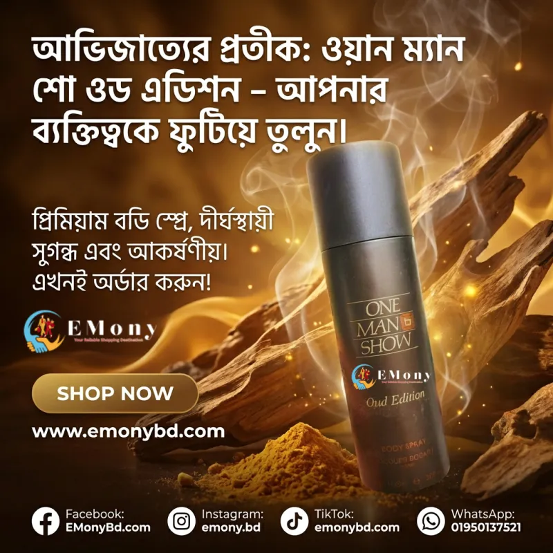 আভিজাত্য এবং রাজকীয় সুগন্ধের খোঁজে থাকা পুরুষদের জন্য ওয়ান ম্যান শো আউদ এডিশন (One Man Show Oud Edition) একটি আদর্শ পছন্দ। ফ্রান্সের বিখ্যাত ব্র্যান্ড জ্যাকেস বোগার্টের এই বডি স্প্রেটি আউদ (Oud) বা আগরকাঠের কড়া ও রাজকীয় ঘ্রাণ সমৃদ্ধ। এতে আউদের পাশাপাশি স্পাইসি এবং উডি নোটের এক অসাধারণ সমন্বয় রয়েছে, যা আপনাকে দেয় এক দীর্ঘস্থায়ী এবং শক্তিশালী পুরুষালী ব্যক্তিত্ব। ২০০ মি.লি.-এর এই 'হাইলি পারফিউমড' বডি স্প্রেটি সাধারণ ব্যবহারের পাশাপাশি যেকোনো জমকালো অনুষ্ঠানে ব্যবহারের জন্য চমৎকার। যারা একটু কড়া এবং ক্ল্যাসিক সুগন্ধ পছন্দ করেন, তাদের কালেকশনে এই আউদ এডিশনটি থাকা আবশ্যক।
