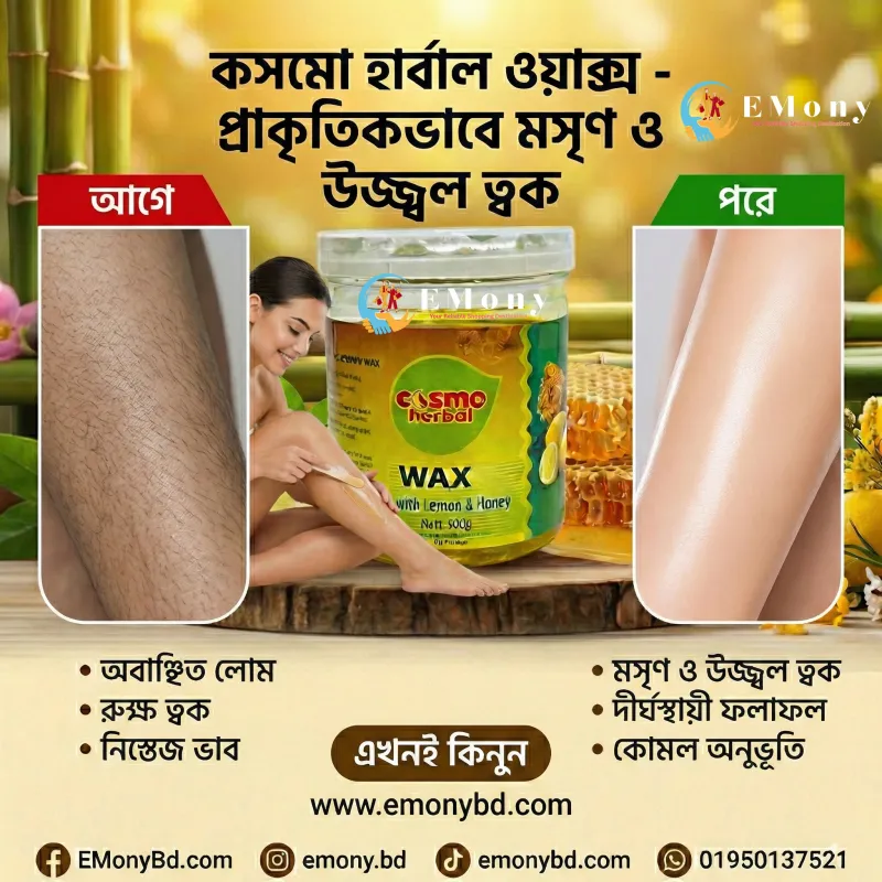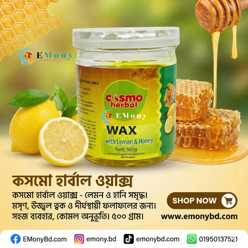 কসমো হারবাল লেমন অ্যান্ড হানি ওয়াক্স (৫০০ গ্রাম) আপনার ত্বককে দেয় দীর্ঘস্থায়ী মসৃণতা এবং প্রাকৃতিক উজ্জ্বলতা। লেবু এবং মধুর অনন্য সংমিশ্রণে তৈরি এই ওয়াক্সটি খুব সহজেই শরীরের অবাঞ্ছিত লোম গোড়া থেকে পরিষ্কার করে। লেবুতে থাকা প্রাকৃতিক ব্লিচিং প্রপার্টিজ এবং ভিটামিন সি ত্বকের কালচে ভাব দূর করে গ্লোয়িং লুক দেয়। অন্যদিকে, মধুর অ্যান্টিব্যাকটেরিয়াল এবং ময়েশ্চারাইজিং গুণ ত্বককে ওয়াক্সিংয়ের পর রাখে একদম নরম, কোমল ও হাইড্রেটেড। এটি ব্যবহারের পর ত্বকে কোনো রকম শুষ্ক ভাব বা ইরিটেশন থাকে না। সব ধরনের ত্বকের জন্য উপযোগী এই হারবাল ওয়াক্সটি ঘরে বসেই আপনাকে দেবে পারফেক্ট ও ব্যথামুক্ত হেয়ার রিমুভাল এক্সপেরিয়েন্স। সুন্দর, মসৃণ ও উজ্জ্বল ত্বক পেতে আজই আপনার রুটিনে যোগ করুন!