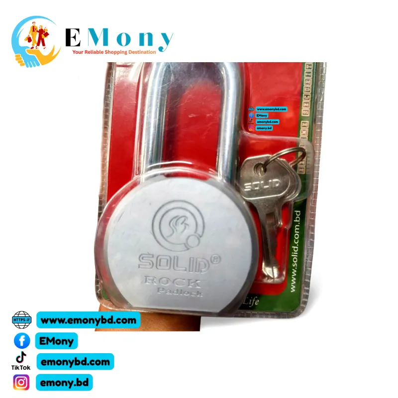 এই ৬৫ মিমি এক্সট্রিম সিকিউরিটি সলিড রক প্যাডলকটি তৈরি করা হয়েছে সর্বোচ্চ নিরাপত্তা নিশ্চিত করার জন্য। এর শক্তিশালী ধাতব বডি বুলেট প্রুফ, অ্যাসিড প্রুফ, অ্যান্টি কাট এবং অ্যান্টি ড্রিল প্রযুক্তিতে সুরক্ষিত, যা যেকোনো ধরনের বলপ্রয়োগ বা কেমিক্যাল আক্রমণ প্রতিরোধ করে।