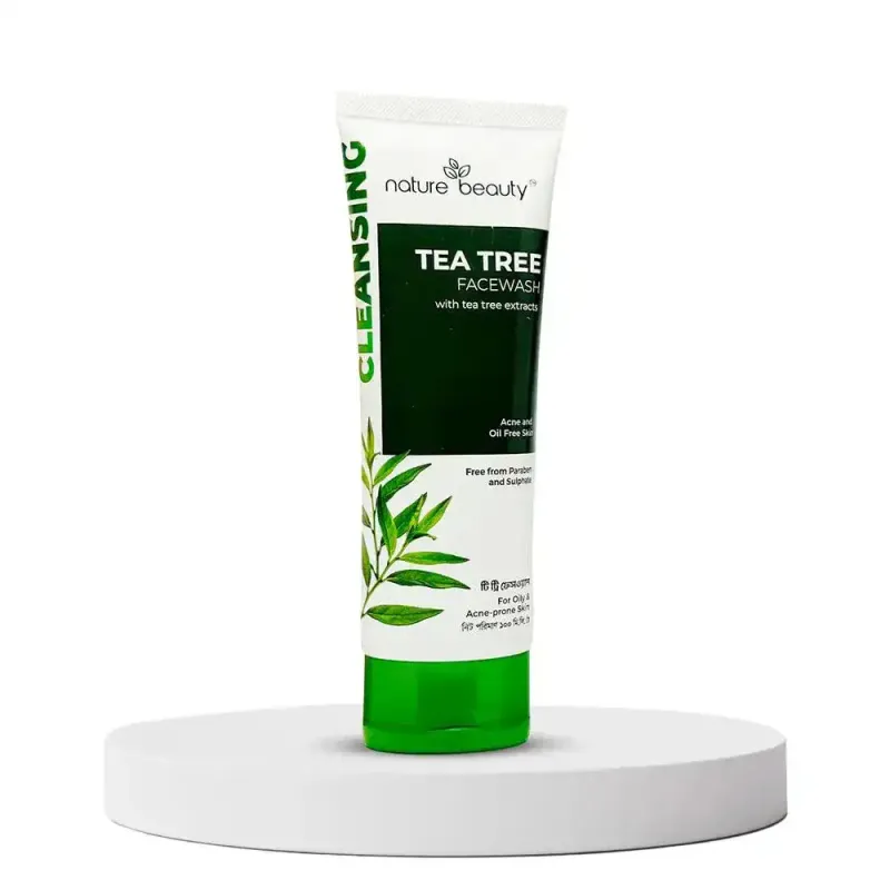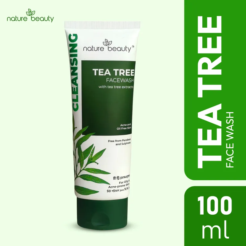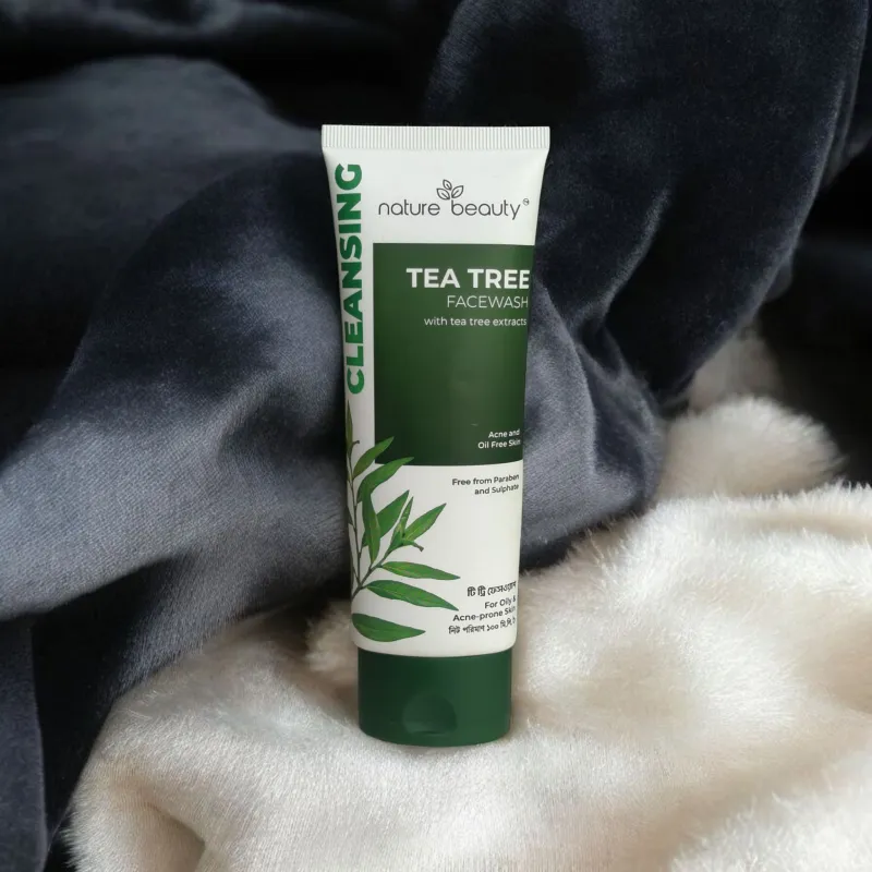 নেচার বিউটি টি ট্রি ফেসওয়াশ: টি ট্রি নির্যাস সমৃদ্ধ এই ফেসওয়াশটি ব্রণ-প্রবণ এবং তৈলাক্ত ত্বকের জন্য বিশেষভাবে তৈরি। ত্বককে গভীরভাবে পরিষ্কার করে, অতিরিক্ত তেল নিয়ন্ত্রণ করে এবং ত্বককে সতেজ করে তোলে।