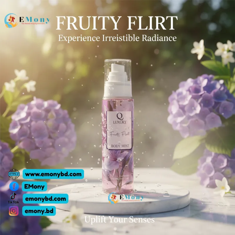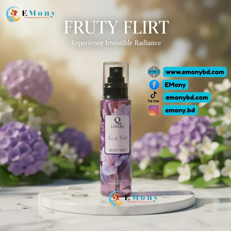 কিউল্যাক্সারি ফ্রুটি ফ্লার্ট বডি মিস্টটি বিশেষভাবে মহিলাদের জন্য তৈরি করা হয়েছে, যারা মিষ্টি এবং হালকা ফলের সুবাস পছন্দ করেন। এই বডি মিস্টের ফ্রুটি নোটস (যেমন বেরি বা সাইট্রাস) তাৎক্ষণিক সতেজতা এনে দেয় এবং মনকে উৎফুল্ল করে তোলে। পারফিউমের তুলনায় এটি হালকা হওয়ায় এটি দৈনন্দিন ব্যবহার বা দিনের যে কোনো সময় দ্রুত সতেজ হওয়ার জন্য উপযুক্ত। এর সুবাস দীর্ঘস্থায়ী নয়, তবে এটি আপনাকে একটি পরিষ্কার, সতেজ অনুভূতি দেবে। এটি পোশাকের ওপর বা সরাসরি ত্বকে ব্যবহার করা যায়। আপনার ব্যক্তিত্বে একটি মিষ্টি, খেলোয়াড়সুলভ (Flirty) ছোঁয়া যোগ করতে এটি ব্যবহার করুন।