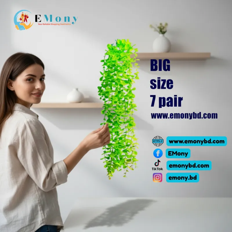 আপনার অন্দরসজ্জায় প্রাকৃতিক ছোঁয়া আনার একটি চমৎকার উপায়। এই প্যাকেজে ৭ জোড়া বা ১৪টি বড় লতা রয়েছে, যা দেয়াল, ব্যালকনি বা ড্রয়িং রুমের কোণ সাজাতে আদর্শ। এর পাতাগুলো উন্নত মানের প্লাস্টিক ও সিল্ক ফেব্রিক দিয়ে তৈরি, যা দেখতে একদম আসল গাছের মতো সতেজ মনে হয়। আসল গাছের মতো এতে জল দেওয়া বা রোদে রাখার ঝামেলা নেই, তাই এটি দীর্ঘসময় ধরে নতুনের মতো থাকে। এটি ধোয়া যায় এবং খুব সহজেই সেটআপ করা সম্ভব। আপনার বাসা, অফিস বা রেস্টুরেন্টের ইন্টেরিয়র ডিজাইনে একটি রাজকীয় লুক দিতে এই কৃত্রিম লতা গাছগুলো সেরা পছন্দ।