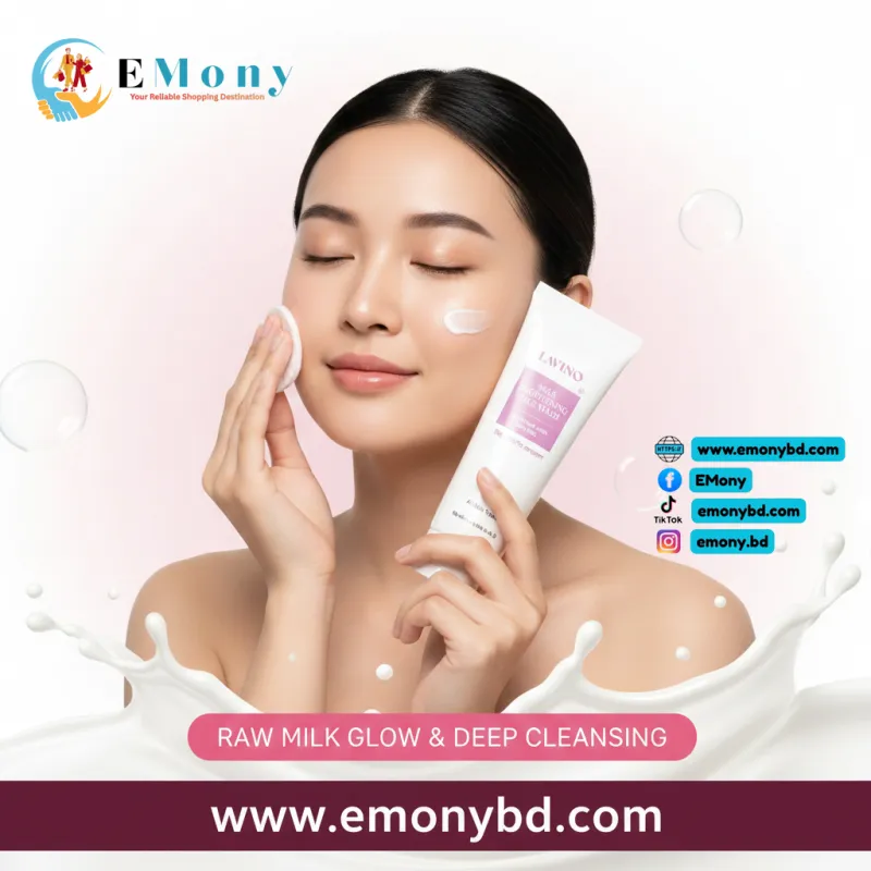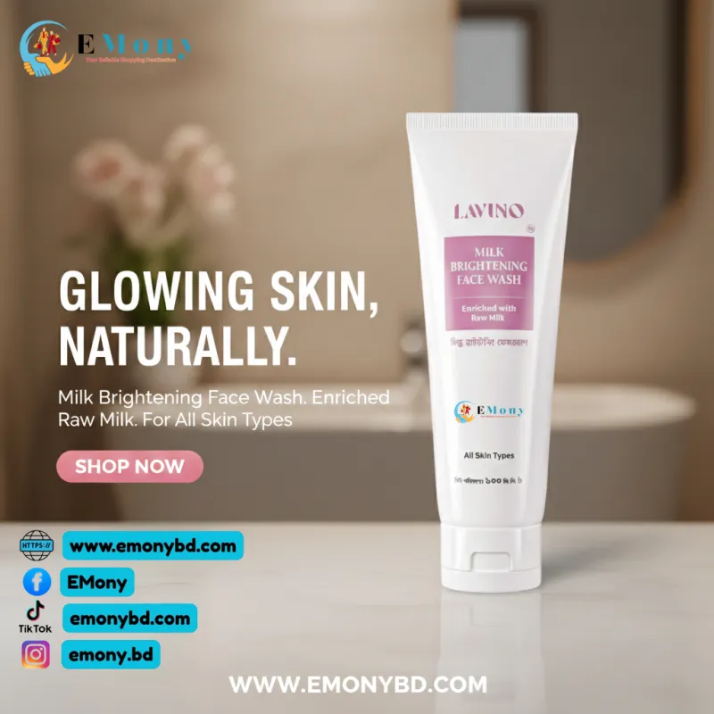 লাভিনো মিল্ক ব্রাইটেনিং ফেস ওয়াশ আপনার নিস্তেজ ও ক্লান্ত ত্বককে মুহূর্তেই সতেজ করে তুলতে কার্যকর। এতে থাকা দুধের নির্যাস (Milk Extract) ত্বককে প্রয়োজনীয় পুষ্টি দেয় এবং প্রাকৃতিকভাবে উজ্জ্বল ও ফর্সা করতে সাহায্য করে। এই ফেস ওয়াশটি ত্বকের স্বাভাবিক আর্দ্রতা না কমিয়েই ধুলোবালি, অতিরিক্ত তেল এবং মেকআপের অবশিষ্টাংশ দূর করে। এর হালকা ফর্মুলা প্রতিদিন ব্যবহারের জন্য উপযোগী এবং এটি ব্যবহারের পর ত্বক শুষ্ক হয় না, বরং অনুভূত হয় অত্যন্ত কোমল ও মসৃণ। সব ধরনের ত্বকের জন্য নিরাপদ এই ফেস ওয়াশটি আপনার স্কিনকেয়ার রুটিনে যোগ করে পান দাগমুক্ত ও প্রাণবন্ত ত্বক।