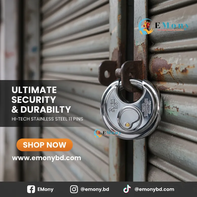 স্টেইনলেস স্টিল বডি এবং ১৪-পিন ব্রাস ডিম্পল প্রযুক্তিতে তৈরি এই তালাটি শাটার ও গেটের জন্য সর্বোচ্চ নিরাপত্তা নিশ্চিত করে।