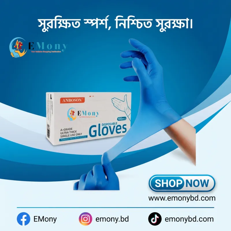 আপনার হাতকে রাসায়নিক দ্রব্য, জীবাণু এবং কঠিন কাজ থেকে রক্ষা করতে আনবোসন এ-গ্রেড আল্ট্রা থিক নাইট্রাইল গ্লাভস (ANBOSON A-Grade Nitrile Gloves) একটি নির্ভরযোগ্য পছন্দ। এটি উন্নত মানের ল্যাটেক্স-ফ্রি নাইট্রাইল উপাদানে তৈরি, যা অ্যালার্জি মুক্ত এবং সাধারণ গ্লাভসের চেয়ে অনেক বেশি মজবুত। এর আল্ট্রা থিক (Ultra Thick) ডিজাইন সহজে ছিঁড়ে যায় না, ফলে এটি ল্যাবরেটরি, শিল্প-কারখানা, মেকানিক্যাল কাজ এবং ক্লিনিক্যাল ব্যবহারের জন্য অত্যন্ত উপযোগী। এই পাউডার-ফ্রি গ্লাভসগুলো হাতে চমৎকার গ্রিপ প্রদান করে এবং কাজ করার সময় স্বাচ্ছন্দ্য নিশ্চিত করে। এক বক্সে ১০০টি গ্লাভস থাকায় এটি দীর্ঘসময় ব্যবহারের জন্য সাশ্রয়ী এবং স্বাস্থ্যসম্মত।