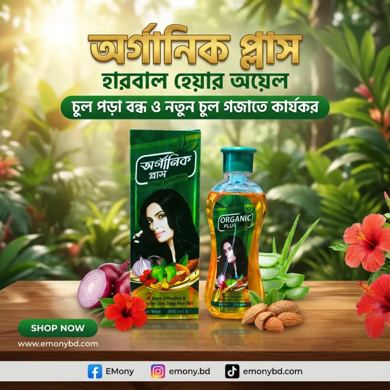 অর্গানিক প্লাস হার্বাল হেয়ার অয়েল: প্রাকৃতিক উপাদানে তৈরি এই তেলটি চুলের গোড়া মজবুত করে, অকাল পক্কতা রোধ করে এবং নতুন চুল গজাতে সাহায্য করে।