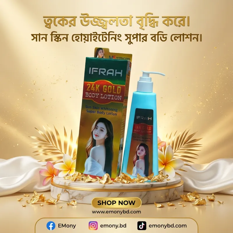 প্রিমিয়াম গোল্ড পার্টিকেলস ও সান প্রোটেকশন সমৃদ্ধ এই লোশনটি ত্বককে দ্রুত ফর্সা করে এবং রোদে পোড়া ভাব দূর করে উজ্জ্বলতা বাড়ায়।