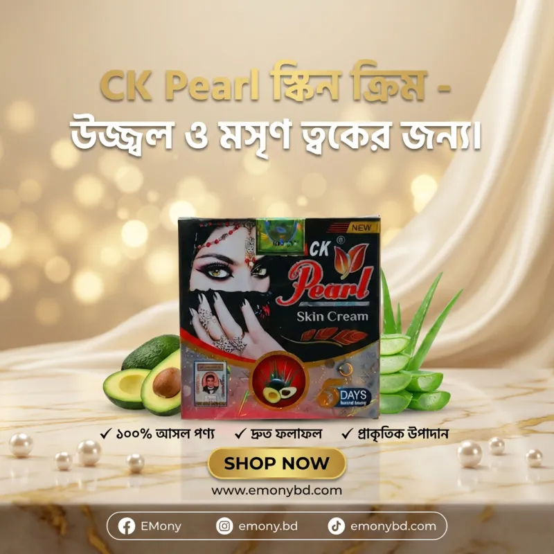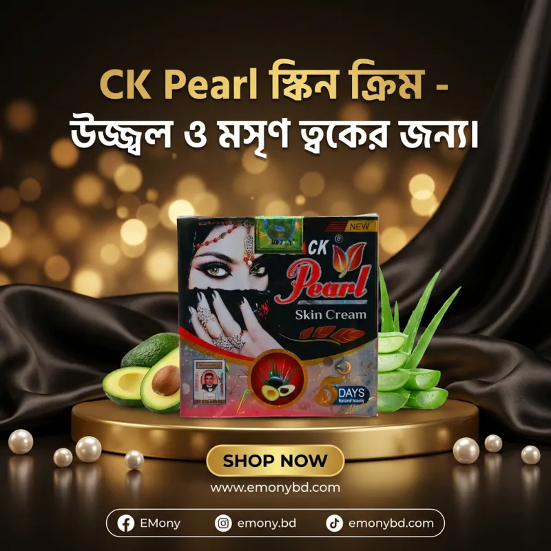 উজ্জ্বল এবং দাগহীন ত্বক পেতে সিকে পার্ল স্কিন ক্রিম (CK Pearl Skin Cream) একটি অনন্য বিউটি সলিউশন। এই ক্রিমে থাকা মুক্তার নির্যাস (Pearl Extract) ত্বকের কোলাজেন উৎপাদন বাড়িয়ে ত্বককে টানটান ও মসৃণ রাখে। এটি ত্বকের হাইপারপিগমেন্টেশন, ব্রণের দাগ এবং রোদে পোড়া কালচে ভাব কার্যকরভাবে দূর করে। এর লাইট-ওয়েট ফর্মুলা ত্বকের গভীরে সহজে শোষিত হয়ে দীর্ঘক্ষণ আর্দ্রতা ও সতেজতা বজায় রাখে। নিয়মিত ব্যবহারে এটি আপনার স্কিন টোনকে উজ্জ্বল করার পাশাপাশি ত্বকে একটি ন্যাচারাল পার্লি গ্লো (Pearly Glow) নিয়ে আসে। সব ধরনের ত্বকে ব্যবহারের উপযোগী এই ক্রিমটি আপনার প্রতিদিনের স্কিনকেয়ার রুটিনে আভিজাত্য যোগ করবে।