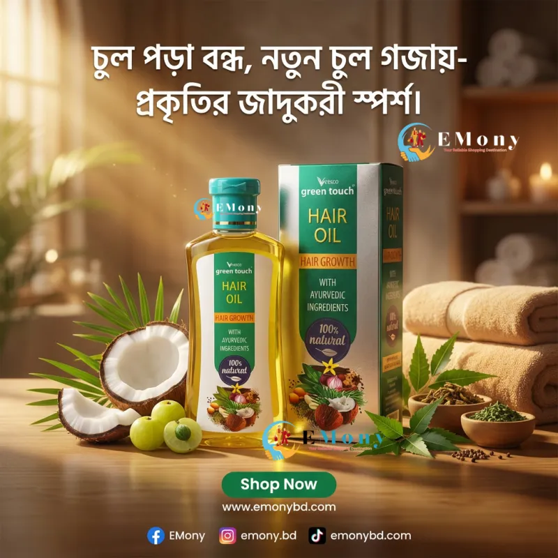 খাঁটি আয়ুর্বেদিক উপাদানে তৈরি এই তেলটি চুলের গোড়া মজবুত করে, নতুন চুল গজাতে সাহায্য করে এবং চুল পড়া বন্ধে ১০০% কার্যকর সমাধান।