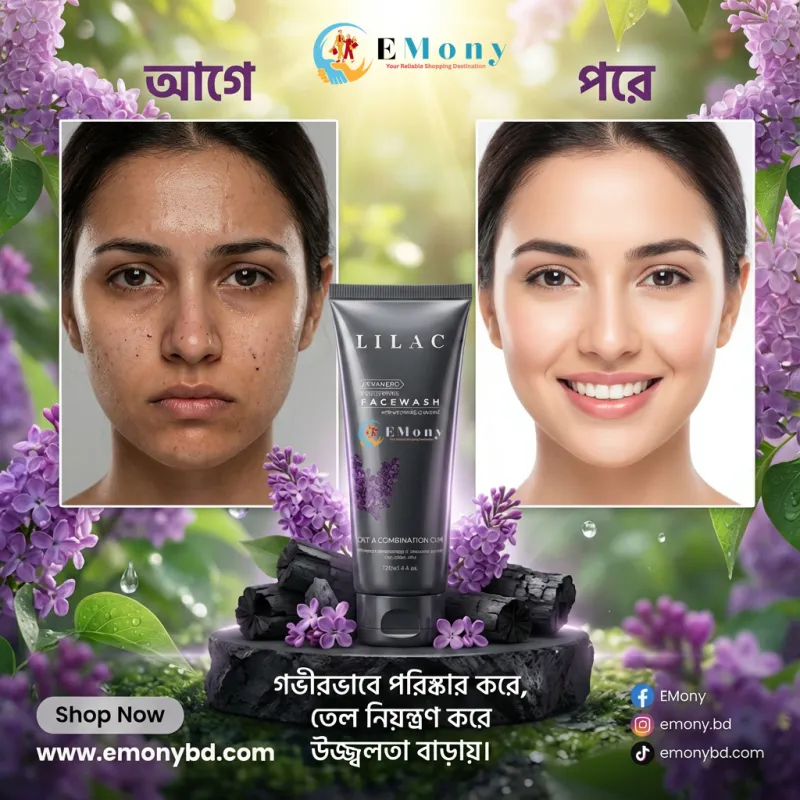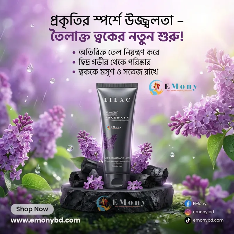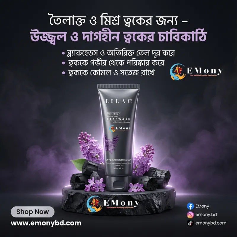 তৈলাক্ত এবং মিশ্র ত্বকের (Oily and Combination Skin) প্রধান সমস্যা হলো অতিরিক্ত সিবাম উৎপাদন এবং ব্রণের প্রকোপ। লাইলাক ব্রাইটেনিং ফেসওয়াশ (LILAC Brightening Face Wash) বিশেষভাবে এই সমস্যার সমাধানের জন্য ডিজাইন করা হয়েছে। এটি ত্বকের রোমকূপের গভীরে থাকা ময়লা ও অতিরিক্ত তেল দূর করে ত্বককে দেয় এক দীর্ঘস্থায়ী ফ্রেশ ভাব। এর বিশেষ ব্রাইটেনিং ফর্মুলা ত্বকের কালচে ভাব (Dullness) দূর করে প্রাকৃতিক জেল্লা ফিরিয়ে আনে। এটি নিয়মিত ব্যবহারে ব্ল্যাকহেডস হওয়ার প্রবণতা কমে এবং ত্বক থাকে তেলমুক্ত কিন্তু হাইড্রেটেড। প্রতিদিনের ব্যবহারের জন্য এই ফেসওয়াশটি আপনাকে দেবে একটি ক্লিন, ম্যাট এবং উজ্জ্বল লুক।