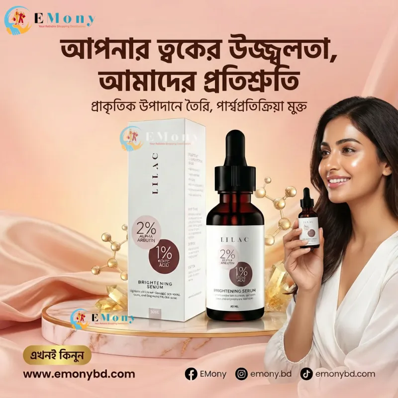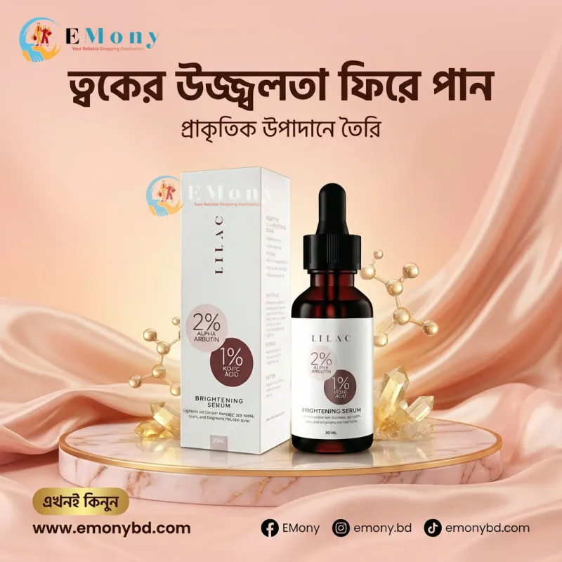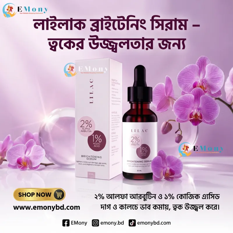 ত্বকের উজ্জ্বলতা বৃদ্ধি এবং দাগহীন ত্বক পেতে লাইলাক ব্রাইটেনিং সিরাম (Lilac Brightening Serum) একটি বিজ্ঞানসম্মত সমাধান। এতে থাকা ২% আলফা আরবুটিন (2% Alpha Arbutin) মেছতা এবং রোদে পোড়া দাগ কমাতে অত্যন্ত কার্যকর। পাশাপাশি ১% কোজিক অ্যাসিড (1% Kojic Acid) ত্বকের হাইপারপিগমেন্টেশন নিয়ন্ত্রণ করে এবং অসম স্কিন টোনকে সমান করে তোলে। এই সিরামটি ত্বকের মেলানিন উৎপাদন কমিয়ে আনে, যার ফলে ত্বক ধীরে ধীরে আরও পরিষ্কার ও উজ্জ্বল দেখায়। এর হালকা ফর্মুলা খুব দ্রুত ত্বকের গভীরে প্রবেশ করে এবং কোনো প্রকার আঠালো ভাব ছাড়াই কাজ শুরু করে। নিরাপদ ও কার্যকরী উপায়ে গ্লোয়িং স্কিন পেতে এটি আপনার স্কিনকেয়ার রুটিনের একটি অপরিহার্য অংশ।