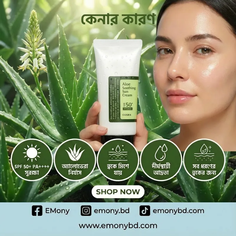 একটি হালকা ও ময়শ্চারাইজিং সানক্রিম যা ৫৫,০০০ ppm অ্যালো ভেরা এক্সট্রাক্ট সমৃদ্ধ। এটি ত্বককে শান্ত করে, আর্দ্র রাখে এবং UVA ও UVB রশ্মি থেকে সুরক্ষা প্রদান করে, সঙ্গে কোনো হোয়াইট ক্যাস্ট ছাড়ে না।