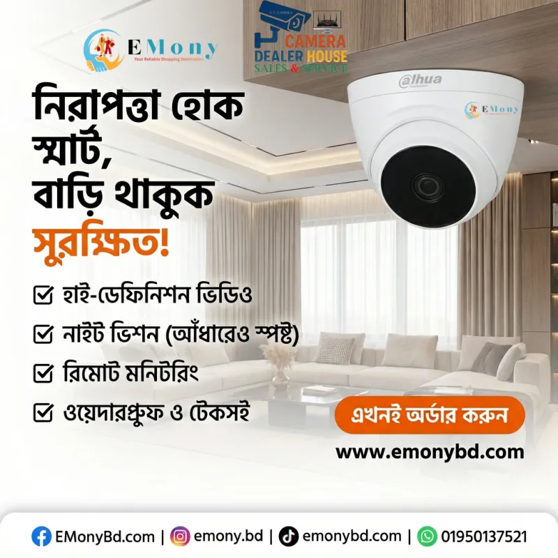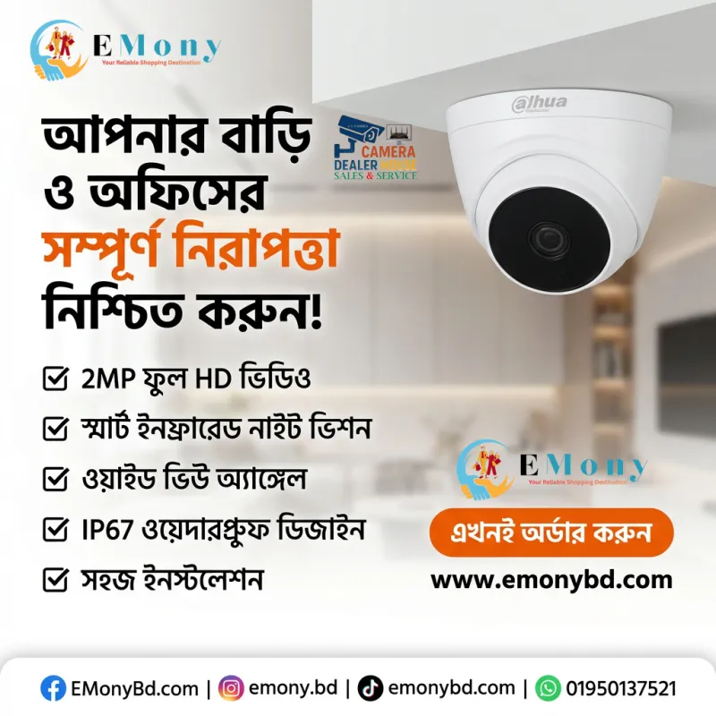 দাহুয়া ২ মেগাপিক্সেল ক্যামেরা: ১০৮০পি ফুল এইচডি রেজোলিউশন, ২০ মিটার স্মার্ট আইআর এবং ২.৮ মিমি ওয়াইড অ্যাঙ্গেল লেন্স সমৃদ্ধ এই ক্যামেরাটি ঘর বা অফিসের অভ্যন্তরীণ নিরাপত্তার জন্য সেরা।