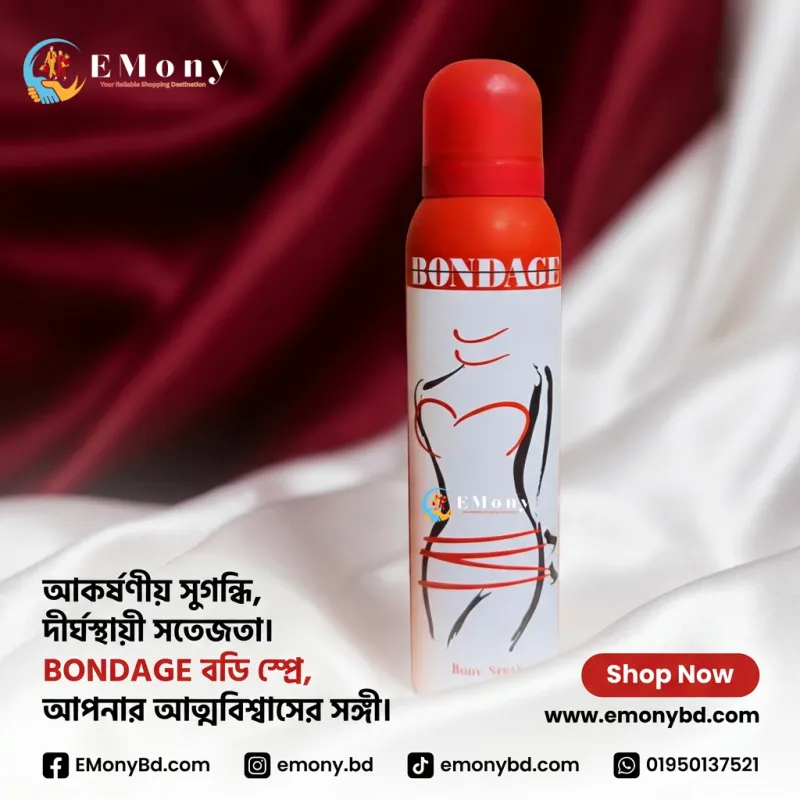 নারীদের আভিজাত্য এবং স্টাইলকে ফুটিয়ে তুলতে বন্ডেজ পারফিউমড বডি স্প্রে (Bondage Perfumed Body Spray) এক অনন্য পছন্দ। ব্রিটিশ ব্র্যান্ড মিল্টন লয়েডের এই সুগন্ধিটি মূলত এর গ্ল্যামারাস এবং লাক্সারি ঘ্রাণের জন্য বিশ্বজুড়ে জনপ্রিয়। এতে থাকা ফ্লোরাল এবং মাস্কি নোটের সমন্বয় আপনাকে দেয় এক মোহনীয় আভা, যা দীর্ঘ সময় স্থায়ী হয়। এর উন্নত 'হাইলি পারফিউমড' ফর্মুলা শরীরের দুর্গন্ধ দূর করে এক ফ্রেশ অনুভূতি বজায় রাখে। ক্যাজুয়াল ডে-আউট হোক বা বিশেষ কোনো ইভেন্ট—এই বডি স্প্রেটি আপনার ব্যক্তিত্বে যোগ করবে এক নতুন মাত্রা। সাশ্রয়ী মূল্যে প্রিমিয়াম পারফিউমের অভিজ্ঞতা পেতে এটি আপনার সেরা চয়েস।