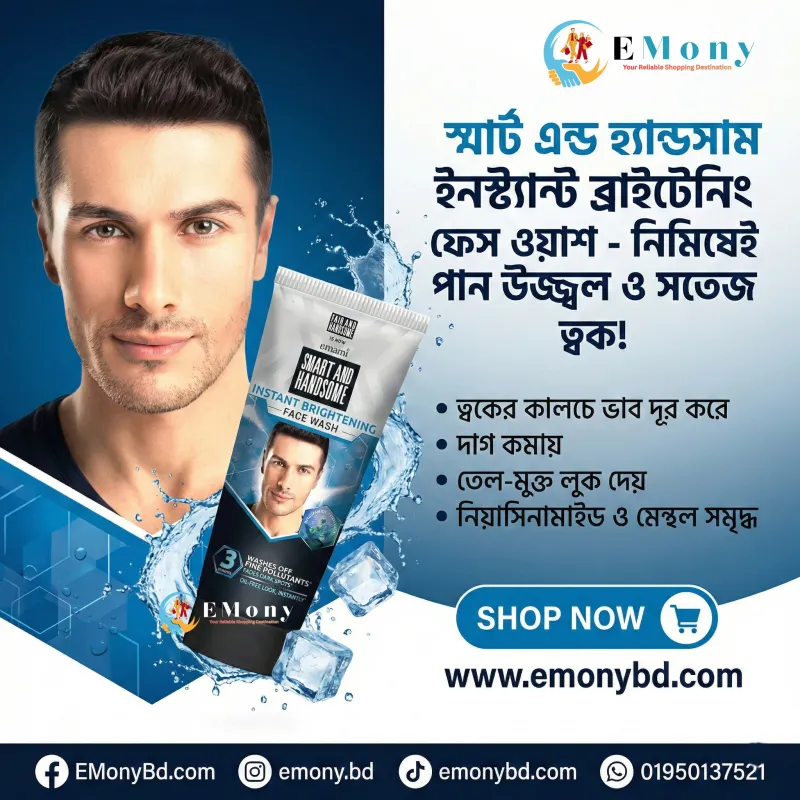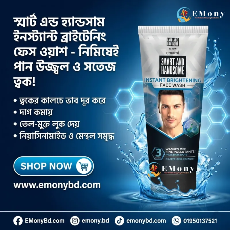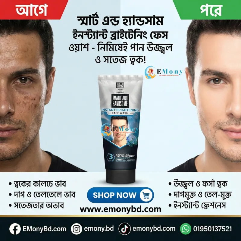 পুরুষদের রুক্ষ ও শক্ত ত্বকের সঠিক যত্নের জন্য ফেয়ার অ্যান্ড হ্যান্ডসাম ইনস্ট্যান্ট রেডিয়েন্স ফেসওয়াশ (১৫০ গ্রাম) একটি অনবদ্য সমাধান। বাইরের কড়া রোদ, ধুলোবালি এবং দূষণে পুরুষদের ত্বক খুব দ্রুত ক্লান্ত ও কালচে হয়ে যায়। এর শক্তিশালী অ্যাকটিভ ফর্মুলা ত্বকের গভীরে প্রবেশ করে জমে থাকা ময়লা, অতিরিক্ত সিবাম (তেল) এবং ঘামের দুর্গন্ধ দূর করে দেয়। এটি ব্যবহারের সাথে সাথেই ত্বকে ফিরে আসে তাৎক্ষণিক উজ্জ্বলতা। প্রতিদিনের ব্যবহারে এটি ত্বকের কালচে দাগ কমায় এবং আপনাকে দেয় একটি আকর্ষণীয় ও আত্মবিশ্বাসী লুক। আপনার গ্রুমিং রুটিনকে আরও কার্যকর করতে এবং সারাদিন সতেজ থাকতে আজই এই অরিজিনাল ইন্ডিয়ান ফেসওয়াশটি ব্যবহার শুরু করুন!