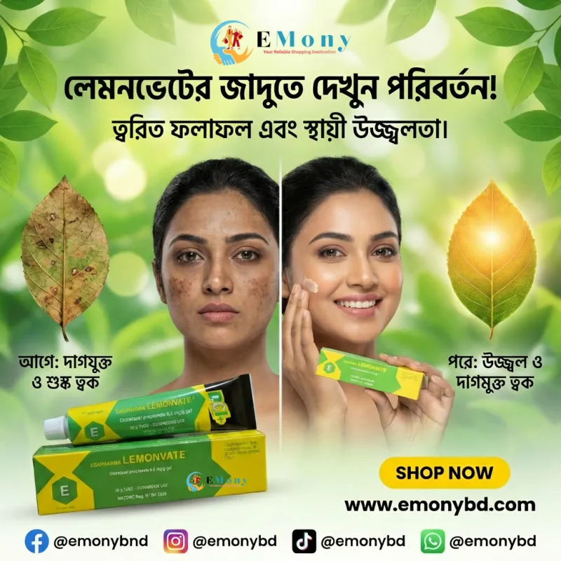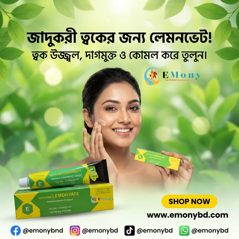 লেমনভেট ক্রিম ত্বককে উজ্জ্বল এবং মসৃণ করার জন্য একটি জনপ্রিয় ক্রিম। এর ফর্মুলা ত্বকের কালো দাগ, মেছতা এবং সূর্যের কারণে সৃষ্ট ক্ষতি হালকা করতে সাহায্য করে। এই ক্রিমটি ত্বকের গভীরে প্রবেশ করে মেলানিন উৎপাদন নিয়ন্ত্রণ করে, যা ত্বককে সমান ও উজ্জ্বল করতে সহায়ক। নিয়মিত ব্যবহারে ত্বকের টেক্সচার উন্নত হয় এবং ত্বক প্রাণবন্ত দেখায়। ৩০ গ্রাম প্যাকেজিংটি সহজে বহনযোগ্য এবং প্রতিদিন ব্যবহারের জন্য উপযুক্ত। ব্যবহারের আগে ত্বকের সংবেদনশীলতা পরীক্ষা করে নিন এবং চিকিৎসকের পরামর্শ নিন।