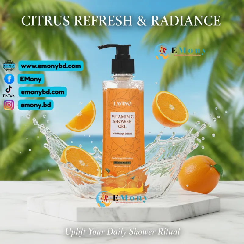 লাভিনো ভিটামিন সি শাওয়ার জেল উইথ অরেঞ্জ এক্সট্র্যাক্ট আপনার স্নানের অভিজ্ঞতাকে সতেজতা ও উজ্জ্বলতায় ভরিয়ে তোলে। ভিটামিন সি একটি শক্তিশালী অ্যান্টি-অক্সিডেন্ট যা ত্বকের টোন উন্নত করে এবং প্রাকৃতিক উজ্জ্বলতা বাড়াতে সাহায্য করে। কমলার নির্যাস (Orange Extract) মনকে চাঙ্গা করে এমন একটি মিষ্টি সুবাস দেয় এবং ত্বককে হাইড্রেটেড রাখে। এই জেন্টল ফর্মুলা ত্বকের স্বাভাবিক আর্দ্রতা বজায় রেখে কার্যকরভাবে ময়লা ও অপরিষ্কারতা দূর করে। নিয়মিত ব্যবহারে আপনার ত্বক হবে পরিষ্কার, কোমল, উজ্জ্বল এবং স্বাস্থ্যকর।