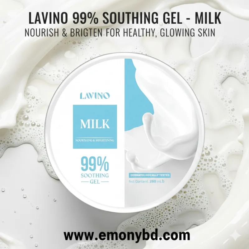 লাভিনো ৯৯% সুদিং জেল (টমেটো/অ্যালোভেরা/মিল্ক): এই মাল্টি-ফাংশনাল জেল ত্বককে ৯৯% পর্যন্ত সতেজতা ও আর্দ্রতা দেয়। এটি দ্রুত ত্বককে শান্ত করে, চুলকানি ও শুষ্কতা দূর করে এবং সব ধরনের ত্বকের জন্য উপযোগী।